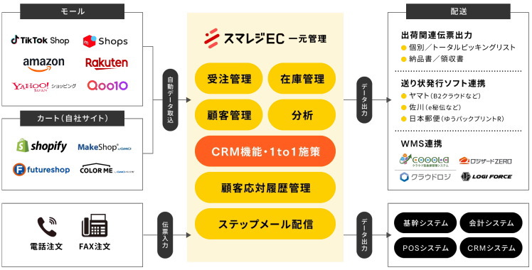 「スマレジEC・一元管理」は「CRM 機能 内蔵型」EC 総合プラットフォーム!